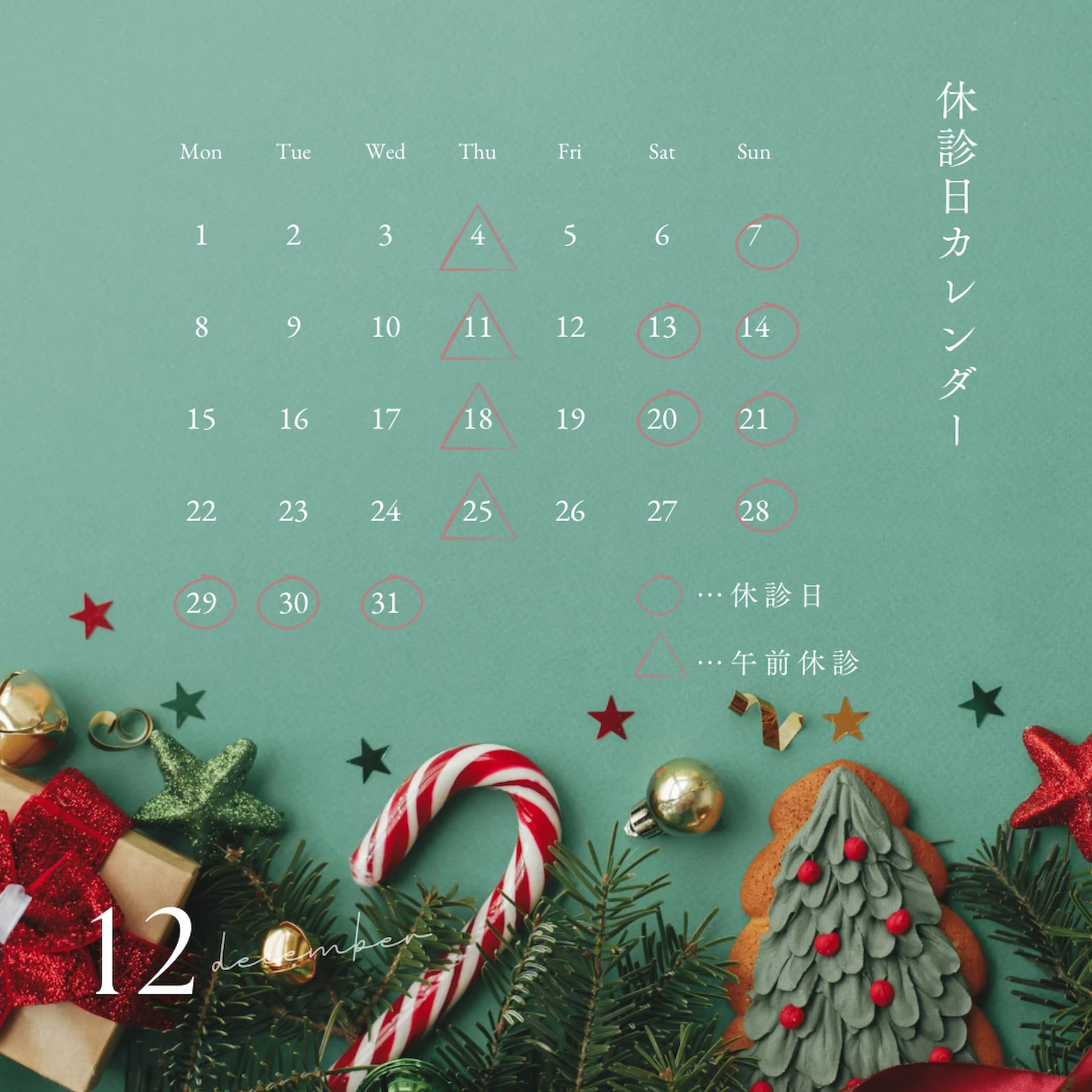 12月のカレンダーができました。信州の山々が静かに雪化粧をはじめる季節。心の調子も日々ゆっくり変化します。気になることがあればお気軽にご相談ください。12月は土曜日が変則的なスケジュールとなります。第2.3土曜日を休診日とさせていただきますので、お間違えのないようにお気をつけください。また、12月28日〜1月4日まで年末年始休診期間とさせていただきます。ご不便をおかけしますが、なにとぞご理解のほど宜しくお願いいたします。